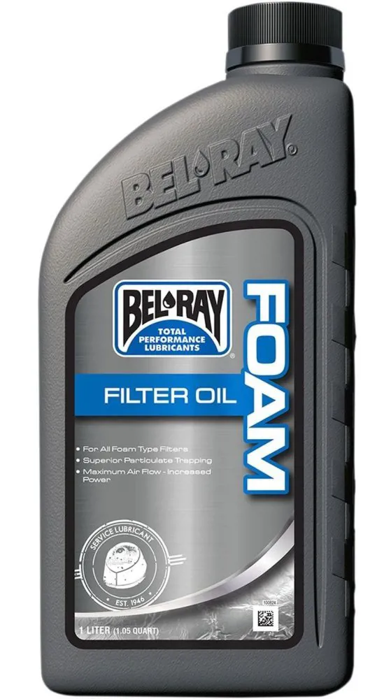 Bel-Ray Foam Filter Oil — це пінна масло для повітряного фільтра, призначена для використання в будь-яких вуличних, позашляхових і гоночних поролонових повітряних фільтрах. Інноваційна технологія Bel-Ray створила несхоже на жодне інше пінофільтруюче масло. Легко наноситься та покращує потік повітря. Ультрав’язка формула утворює масляний бар’єр для захоплення частинок мікронного розміру, які можуть пошкодити двигун. Водонепроникна олива для повітряного фільтра Bel-Ray запобігає засміченню під час намокання.