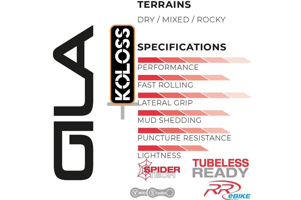 Покришка Hutchinson Gila KOLOSS - оптимізована для використання в Enduro та на E-Bike, тому відмінно покаже себе при їзді технічними трейлами. Протектор покришки з шириною в 2.60˝ вгризається в ґрунт, надаючи більшу пляму котакту а відповідно і більше стабільності в керуванні велосипедом, незалежно від того, на скільки круті повороти попереду. Часті блоки протектора по центру забезпечують краще проходження кам'янистих відрізків траси. Бічні блоки мають розгорнуте направлення, для кращої стабільності на поворотах, особливо на м'яких ґрунтах. Навіть коли велосипед нахиляється надто сильно.