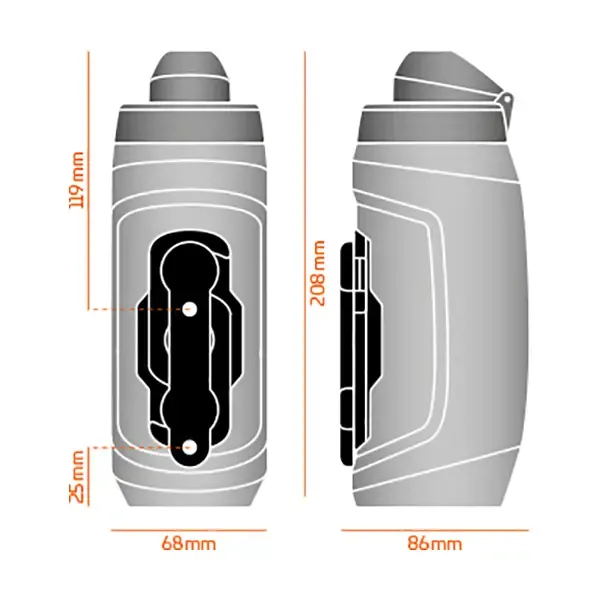 Модулі TWIST знімаються з боку тримача обертанням за годинниковою стрілкою. Це дає можливість встановити пляшку на найвужчі та маленькі велосипедні рами, куди не поміститься звичайна пляшка.