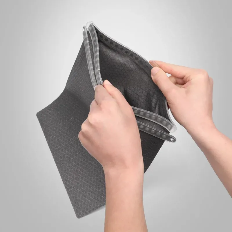 Гермочохол FIDLOCK HERMETIC dry bag mega — це надміцне та просторе рішення для захисту планшетів, документів та інших великих речей від води, пилу та піску. Завдяки самозакривній магнітній технології HERMETIC, чохол автоматично герметизується без застібок, кнопок чи блискавок — достатньо просто відпустити край, і все миттєво закриється.