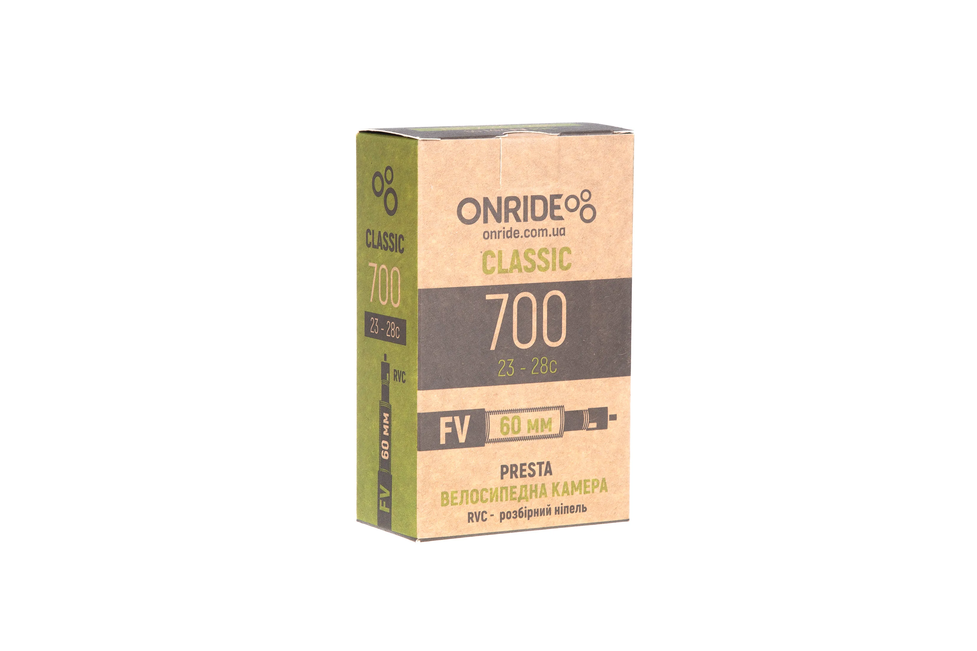 Камери ONRIDE з ніпелем Presta (FV) виготовляються за допомогою процесу формування, який забезпечує однакову товщину гуми. Завдяки цьому вони легкі, не виявляють значного опору коченню та витривалі до стиснення.