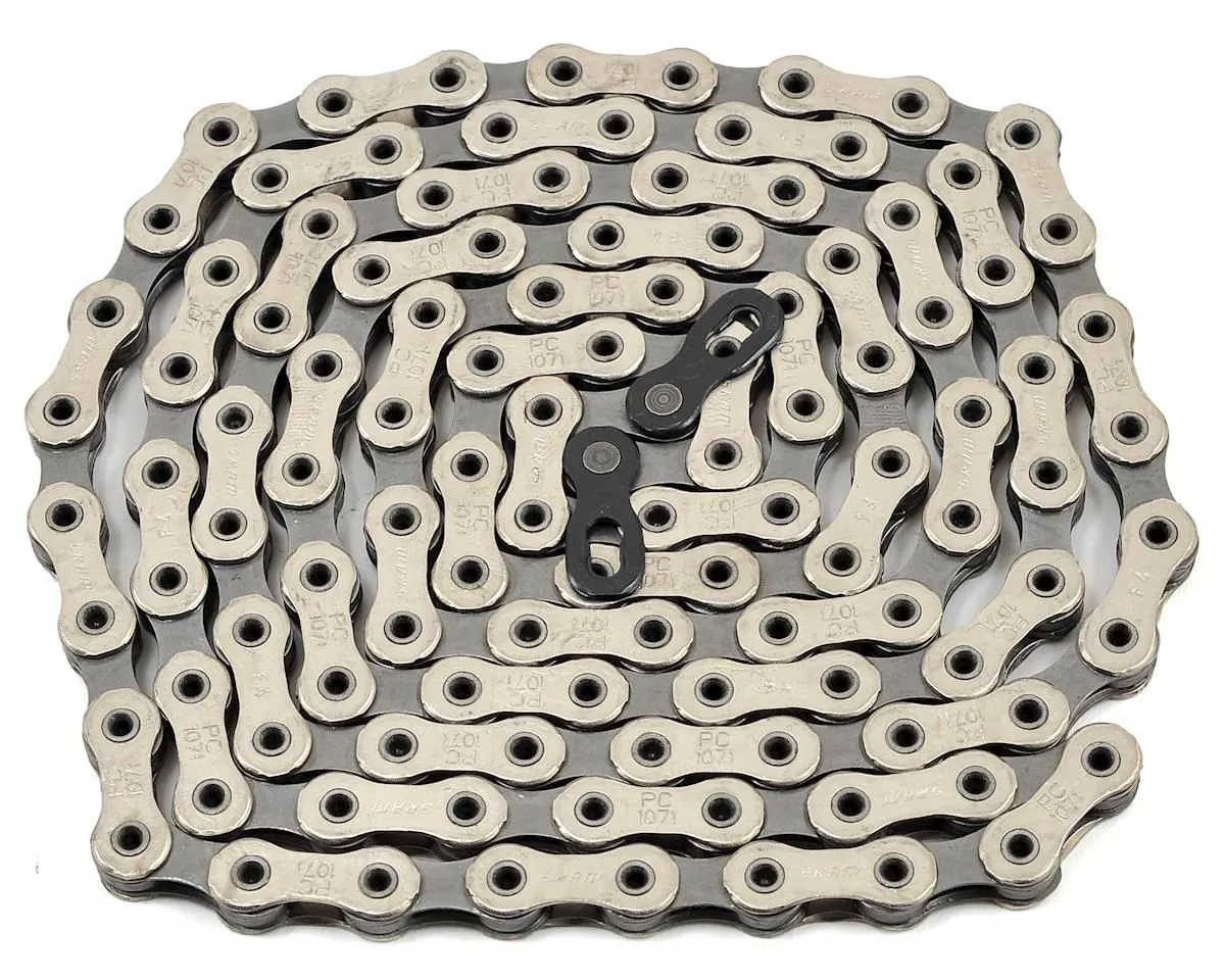 Особливості: • Екстримально міцні, неймовірно точні. Технологія SRAM PowerChain II поліпшує перемикання спереду під навантаженням, не зачіпаючи чіткості перемикання ззаду; • HollowPin™ - порожнисті штифти ланцюга значно знижують вагу ланцюга без зашкодження міцності • Довговічність ланцюга забезпечується хромуванням штифтів • Зовнішні ланки нікельовані для забезпечення стійкості до корозії • В комплекті замок ланцюга PowerLock. Додатково: • Для запресування і видавлюванню піну (штифту) ланцюга необхідний витискач. Змазування ланцюга бажано робити спеціалізованими мастилами. Технічна документація від виробника: