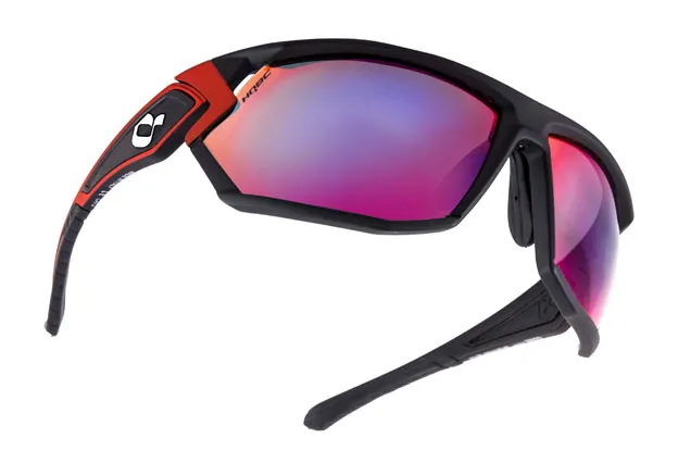 Універсальні легкі окуляри з сучасним дизайном, підійдуть не тільки для їзди на велосипеді, а й для занять спортом. Оправа з матеріалу GRILAMID TR90. UV 400 - 100% захист від ультрафіолету. Червона дзеркальна полікарбонатна лінза від Сarl Zeiss (кат. 2). У верхній частині оправи додаткові отвори для поліпшення вентиляції. Регульований носовий упор з матеріалу MEGOL В дужках знімні заглушки, що дозволяє поліпшити вентиляцію. Жорсткий дорожній футляр. Мішечок для окулярів, застосовуваний також для протирання лінз. . Розмір 152мм, Біфокальний кут 9 °, Діаметр лінзи 80мм, Вага 28,5г (без заглушок).