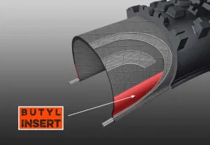 Покришка складається з міцного каркаса 60 TPI та великої вставки з бутилкаучуку, яка проходить від кожного борту до боковини.