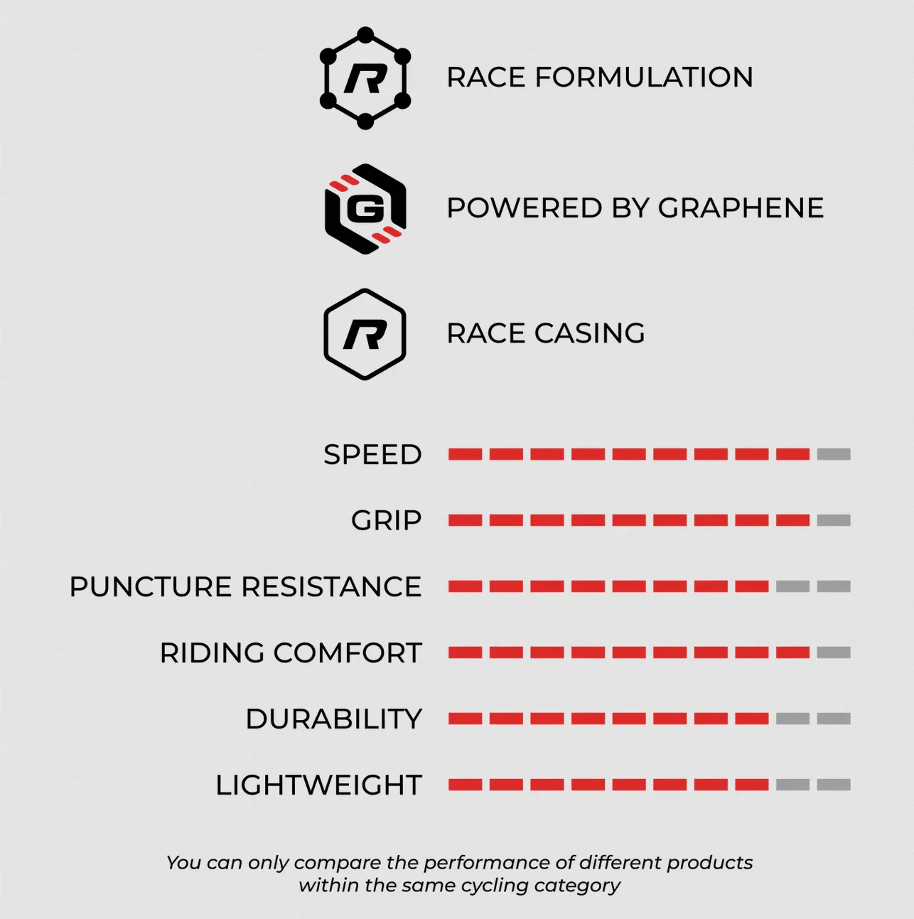 4Compound оптимізовані суміші на основі графену, стратегічно розміщені там, де вони потрібні, для неперевершеного поєднання швидкості, зчеплення та міцності. (липкі боковини, міцний і швидкий центр)
