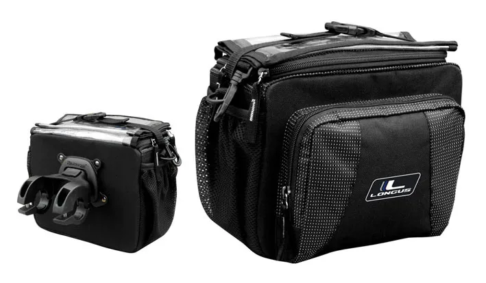 Велика міцна сумка з кріпленням на кермо, жорстке кріплення керма, верхнє прозоре відділення для карти, зручний ремінь для носіння на плечі. Ідеальне рішення для велотуризму.