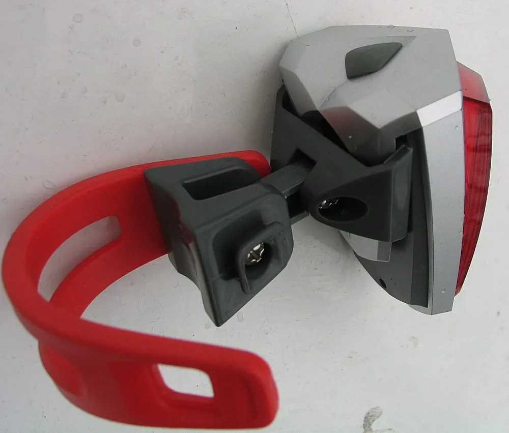 Крепится на рюкзак или на подседельный штырь при помощи силиконовго обжима, имеет в комплекте батарейки.