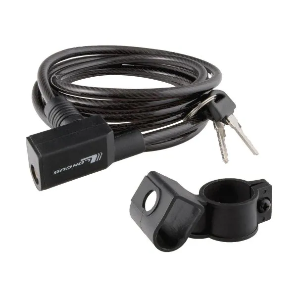Класичний тросовий замок на ключ, тримається за допомогою рами або тримача підсідельного штиря. Замок служить для захисту велосипеда або аксесуарів від випадкової крадіжки.