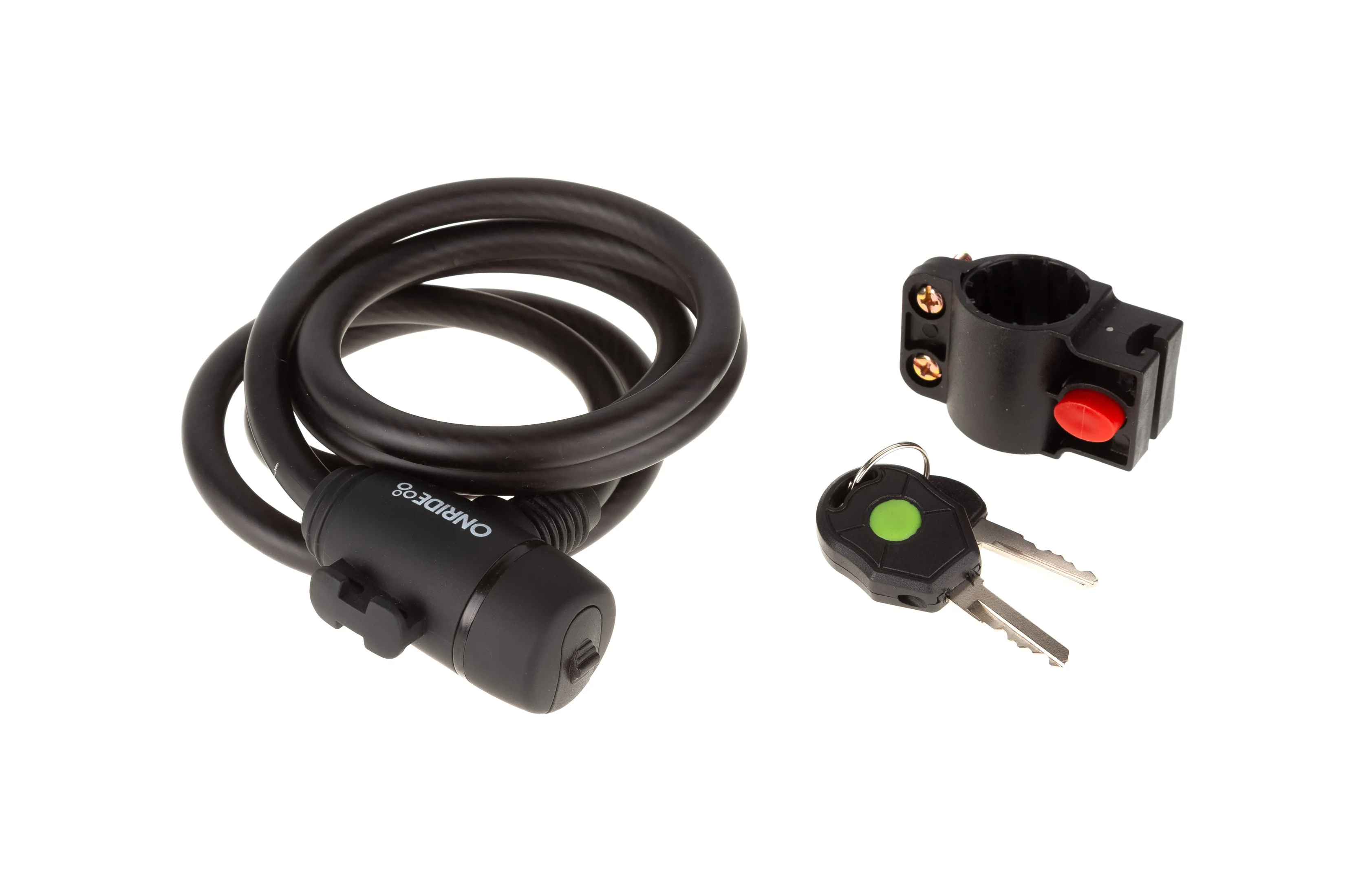 Спіральний велосипедний замок. В комплекті до замка 2 ключа + кріплення за допомогою якого замок можна закріпити на підсідельному штирі.