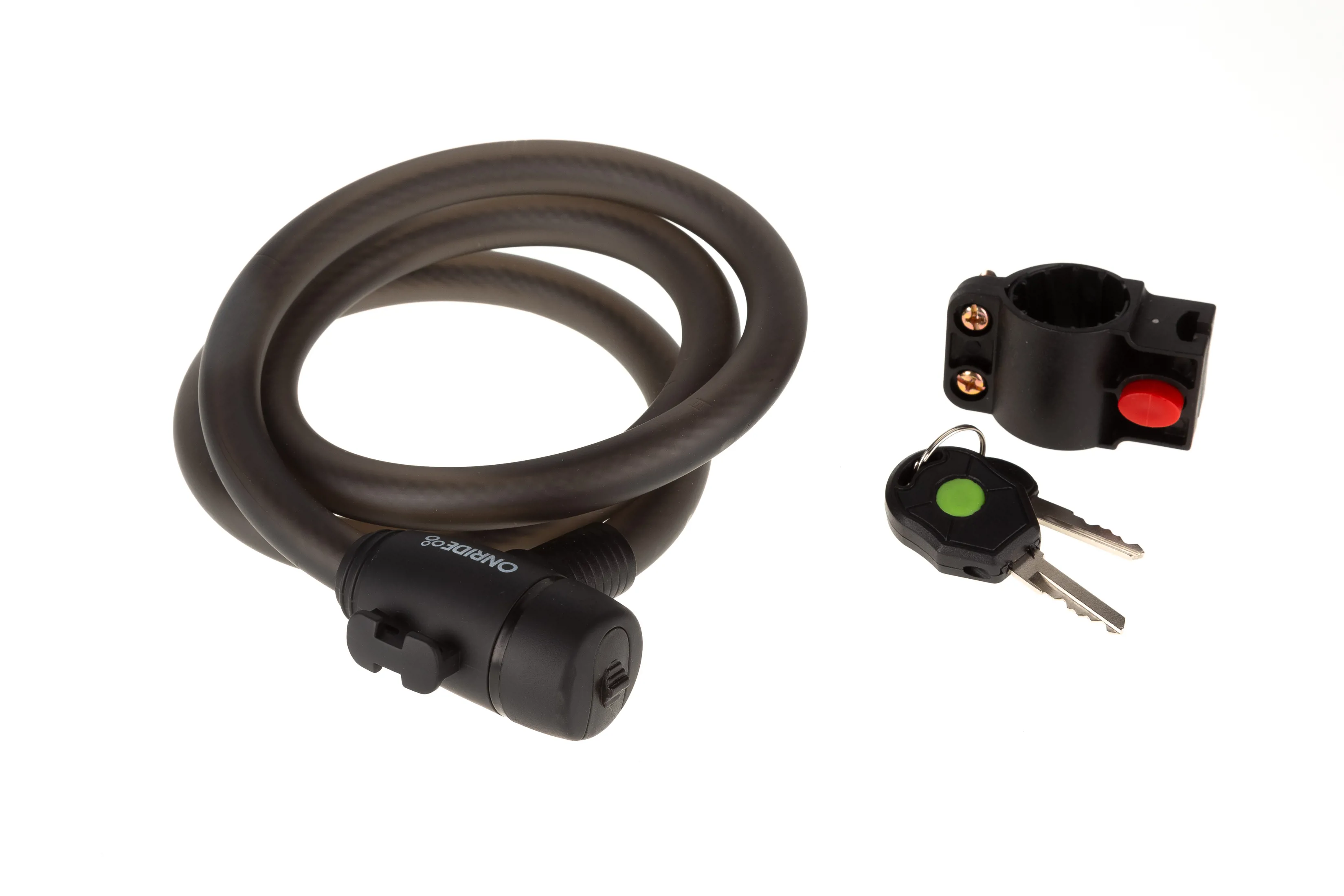 В комплекті до замка 2 ключа (один із підсвіткою) + кріплення за допомогою якого замок можна закріпити на підсідельному штирі.