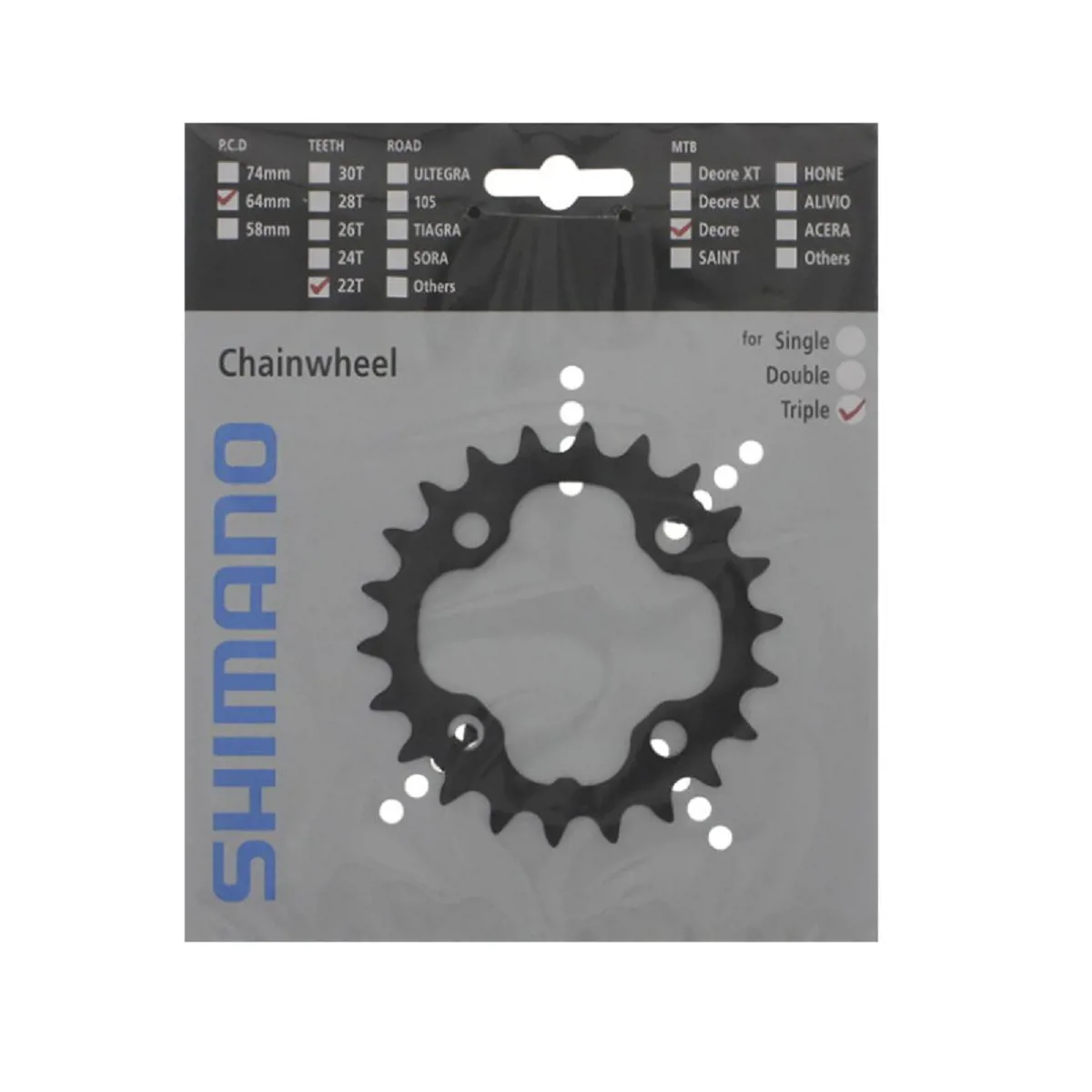 Зірка шатунів FC-M590, 22 зуб. • Діаметр монтажу: 64 мм • Трансмісія: 3Х9 • Матеріал: сталь