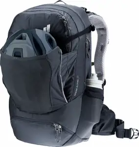Містке основне відділення та безліч функціональних елементів дають можливість запакувати все необхідне так, щоб воно було в легкому доступі. Тримач для шолома, з яким легко і швидко поводитись, та відділення для насоса, з доступом зовні. Оновлена система спини Deuter Airstripes забезпечує покращену вентиляцію за рахунок меншої контактної поверхні та більш гнучких рюкзачних лямок для більшої свободи рухів.