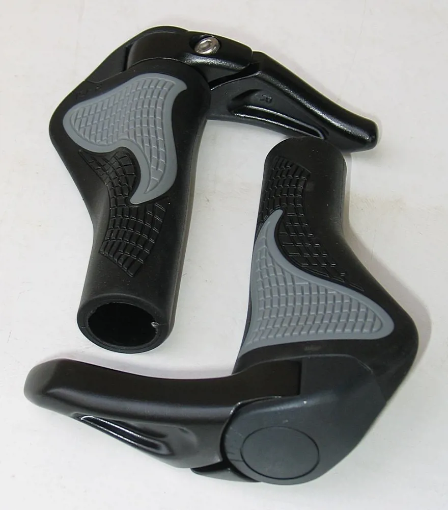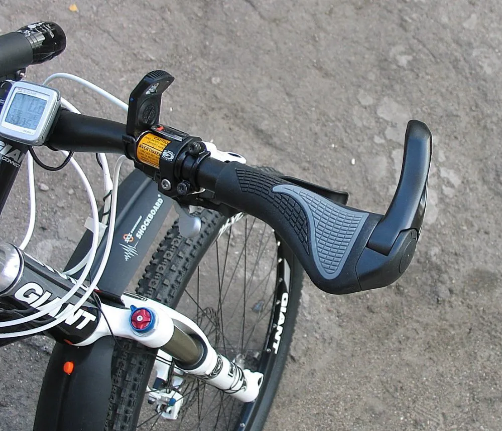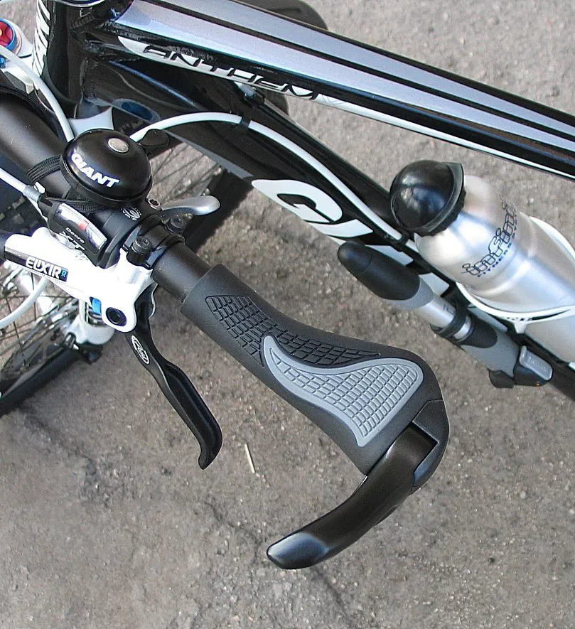 Велосипедные грипсы с интегрированными алюминиевыми рожками. Эргономический дизайн, который снижает локальную нагрузку на ладонь при длительных поездках.