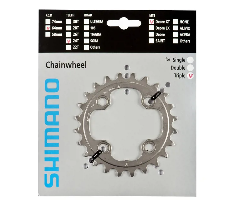 Зірка шатунів FC-M770-10, FC-M780 DEORE XT, 24зуб. АЕ. • Діаметр монтажу: 64 мм • Трансмісія: 3X9/10 • Матеріал: алюміній