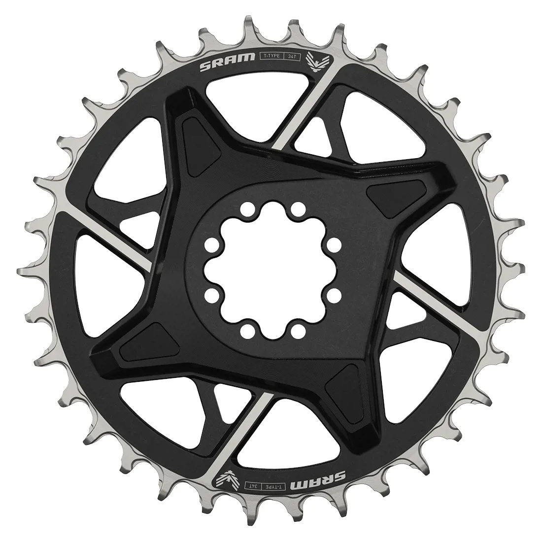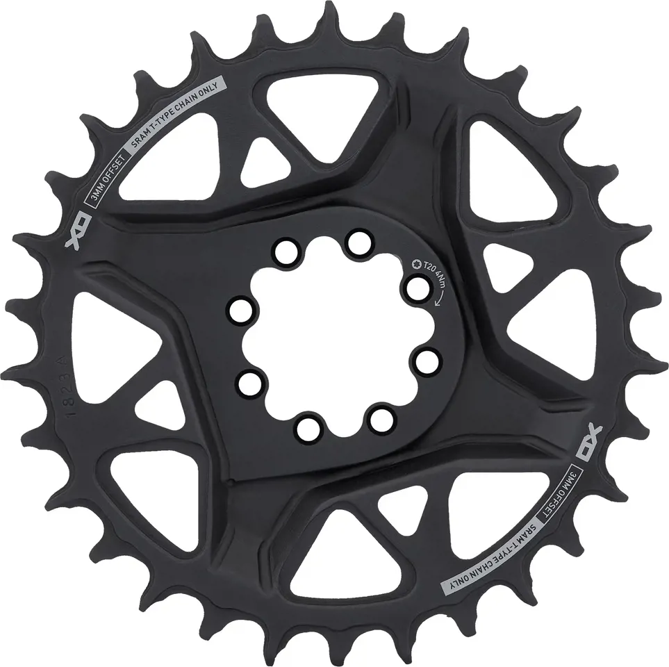 Зірка SRAM XO Eagle Transmission виготовлена із міцного та легкого алюмінію та встановлюється на 8 болтові direct mount шатуни SRAM Transmission. Приголомшливе оздоблення та виразний дизайн з двома спицями забезпечують бездоганну продуктивність.
