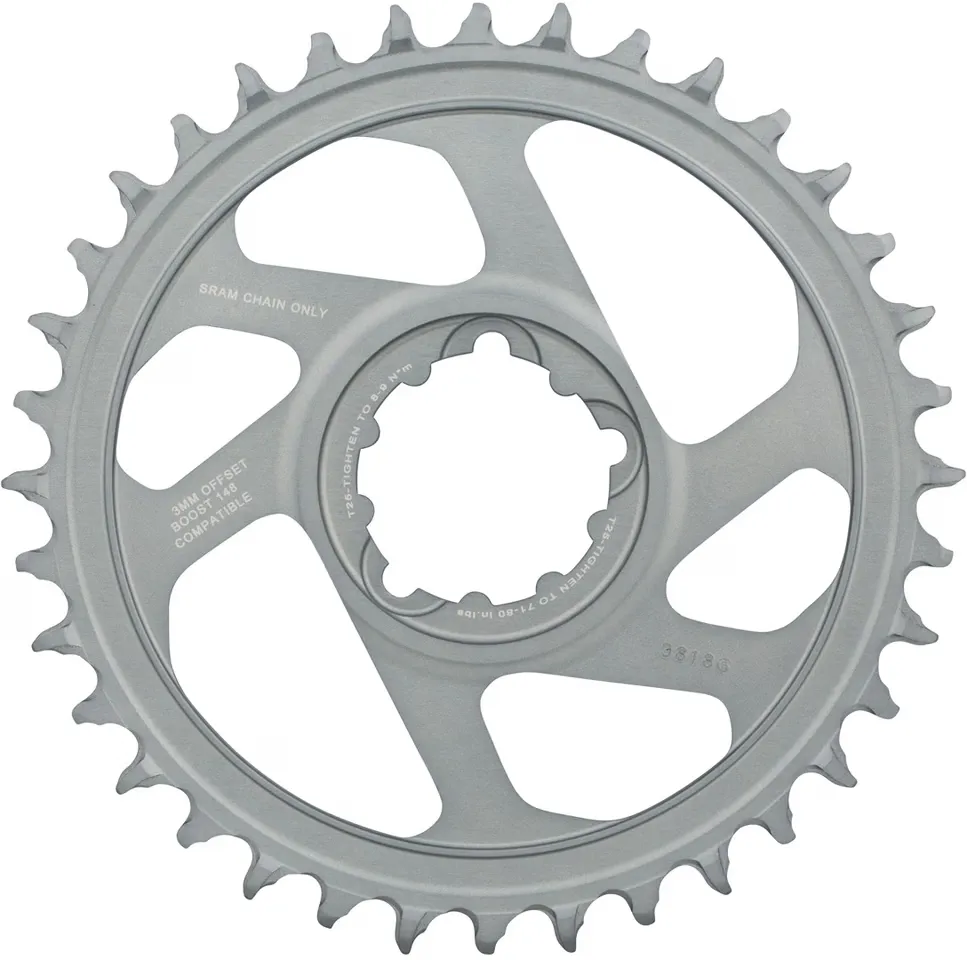 Зірки SRAM X Sync-2 Direct Mount характеризуються набагато тихішим ходом ланцюга та кращим самоочищенням у брудних умовах порівняно зі своїми 11-швидкісними попередниками. Завдяки перевіреному профілю зубів, що чергується, “товстий-тонкий”, який підходить для ланцюгів Eagle XX1 і XO1, зірки X-Sync 2 завжди надійно утримують ланцюг на місці. Зірочки доступні з числом зубів від 30 до 38, а також із чорними або золотими логотипами SRAM Eagle.